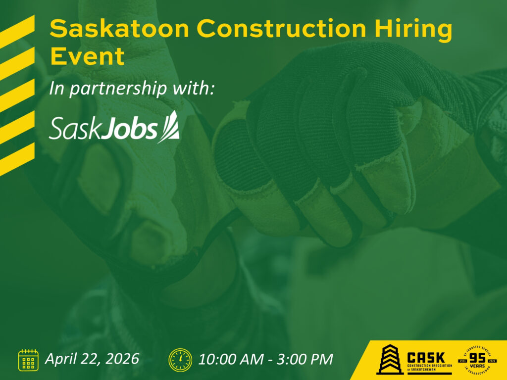 Join Saskjobs and the Construction Association of Saskatchewan (CASK) for a hiring event featuring four leading Saskatchewan construction companies!