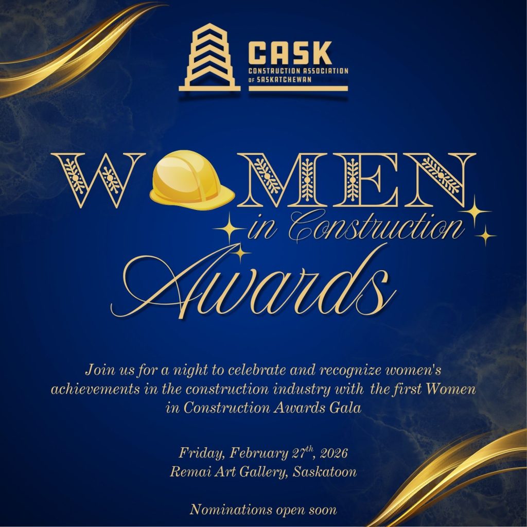 Nominations for Awards open now: Email us at webuildsk@construction.ca to get a nomination package. Nominations close November 21st.