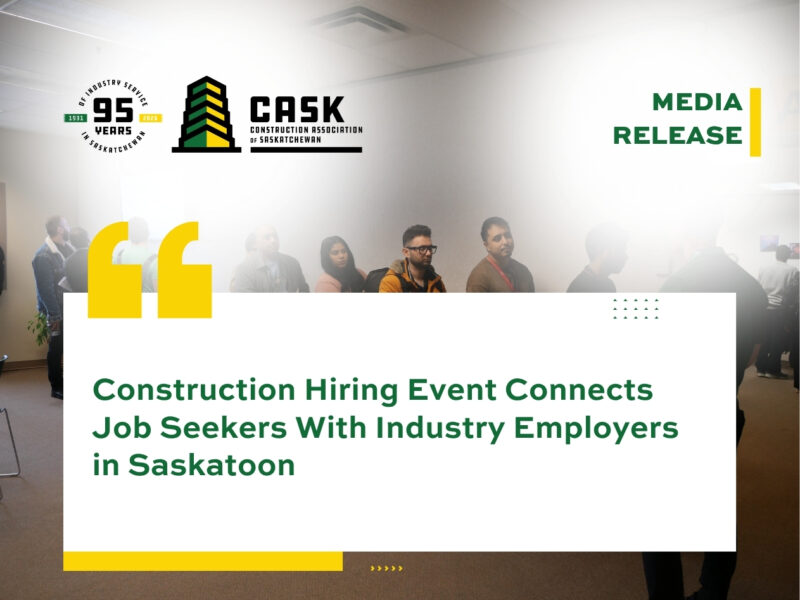 SASKATOON, SK — The Construction Association of Saskatchewan (CASK), in partnership with SaskJobs, hosted a pilot construction hiring event in Saskatoon today, bringing together more than 250 registered job seekers and leading employers from across Saskatchewan’s construction industry.